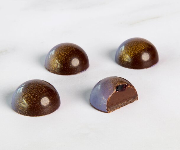 - Fondere il CHOCOSMART FONDENTE a 30°C e farcire le praline lasciando circa 1 mm dal bordo.